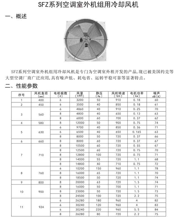 十、SFZ 系列空調(diào)室外機組冷卻風(fēng)機