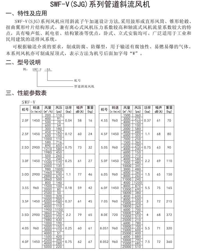 四、SWF-V(SJG)系列混流風(fēng)機(jī)