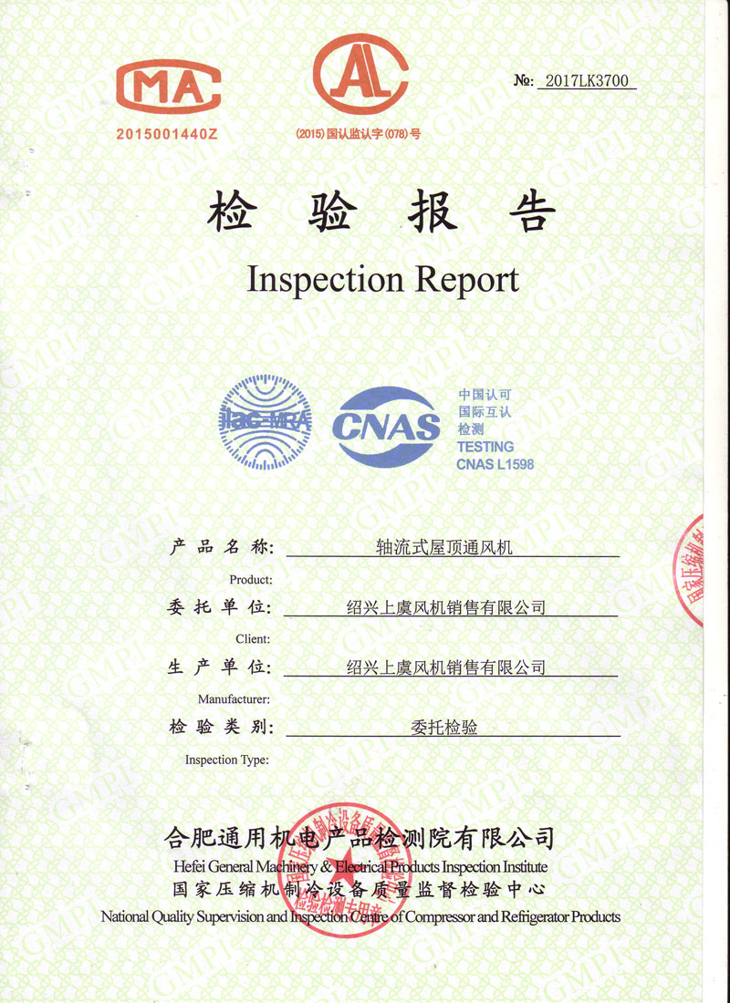 生產(chǎn)許可證檢驗(yàn)報(bào)告低噪聲屋頂風(fēng)機(jī) |